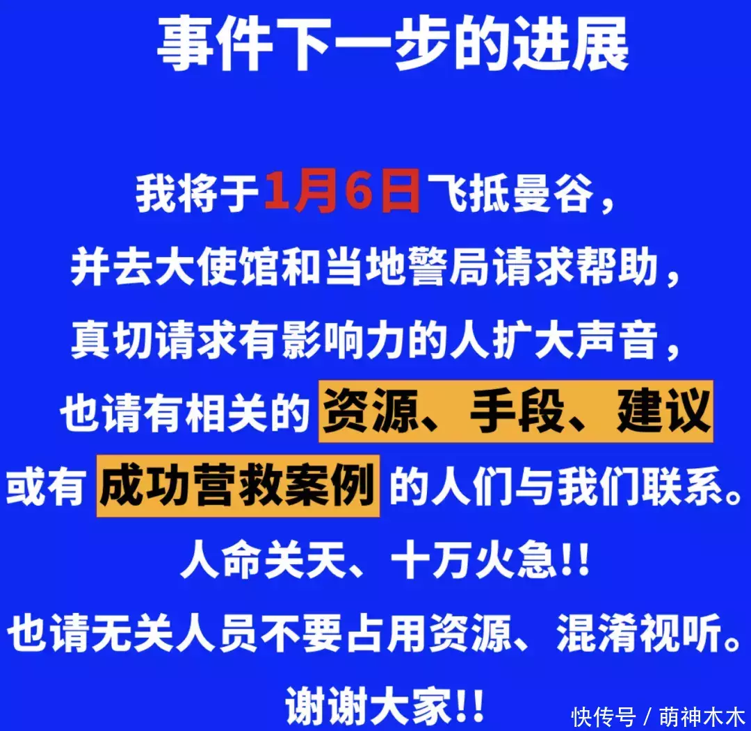 事发后,女友立即联络有关部门,并且于1月6日飞抵曼谷,去大使馆和当地警局立案。