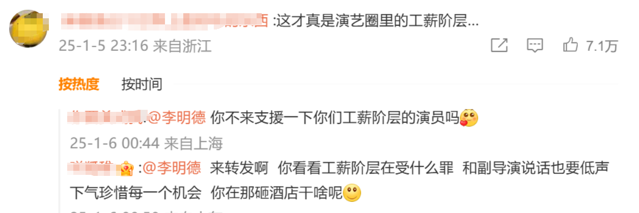 看到这里,也是不得不说,这才是真正的娱乐圈底层小艺人,为了谋求机会,尽管报酬没有那么高,也愿意去求一个机会。反观李明德这种,在马天宇的剧组演男二号,背靠和颂这种行业大公司,稍不如意就砸东西开撕剧组,开着豪车穿着名牌自称穷小子,开播半小时品牌方和用户刷千万流量礼物,对比一下小演员的情况,这真是魔幻的一幕。