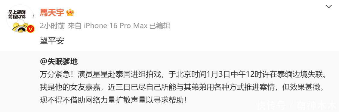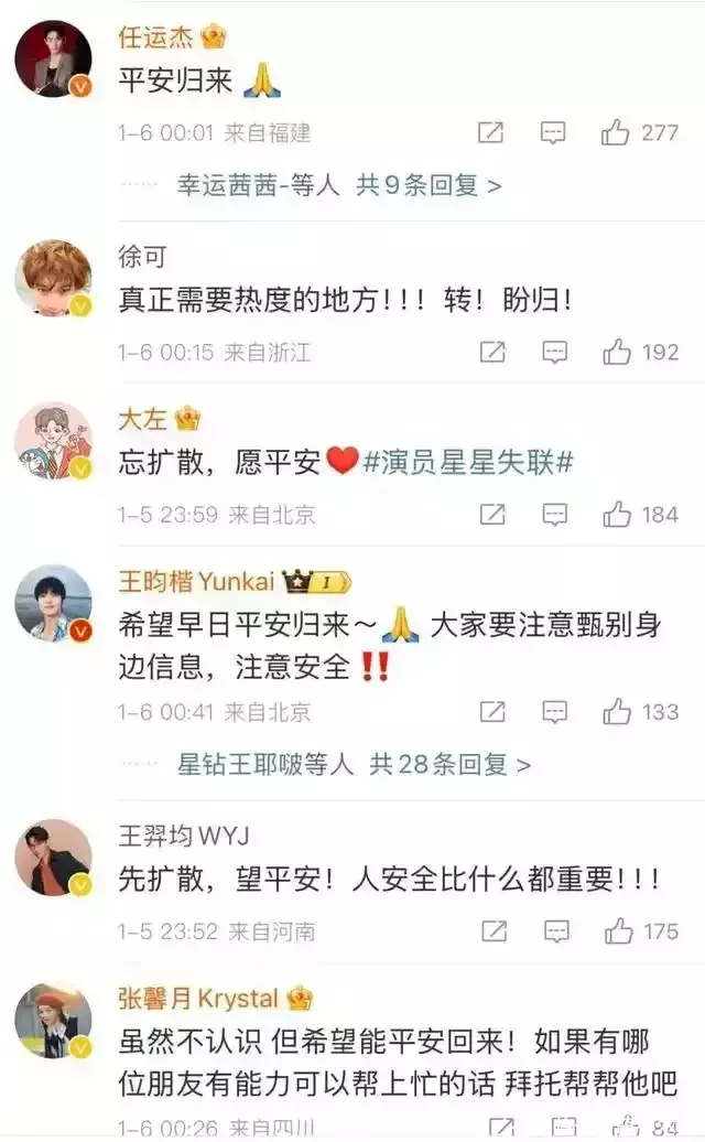 如今马天宇也转发了星星失联的求助微博,希望对方能平安。